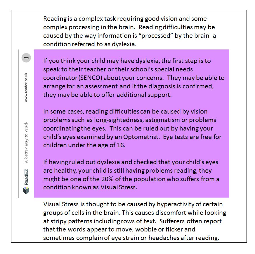 Packs of ReadEZ Overlays (one colour).  A5 sheets made of durable acetate. Designed by a team of vision scientists, the Overlays use carefully selected colours to minimise the symptoms of visual stress.