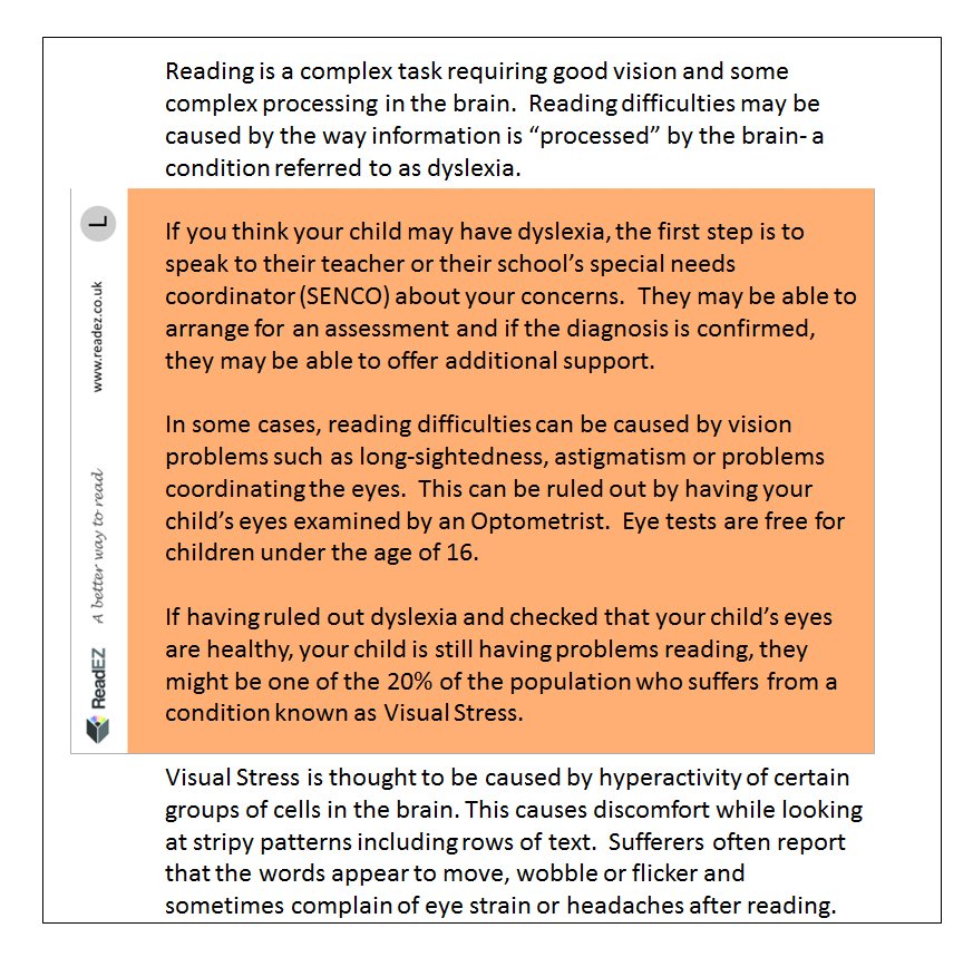 Packs of ReadEZ Overlays (one colour).  A5 sheets made of durable acetate. Designed by a team of vision scientists, the Overlays use carefully selected colours to minimise the symptoms of visual stress.
